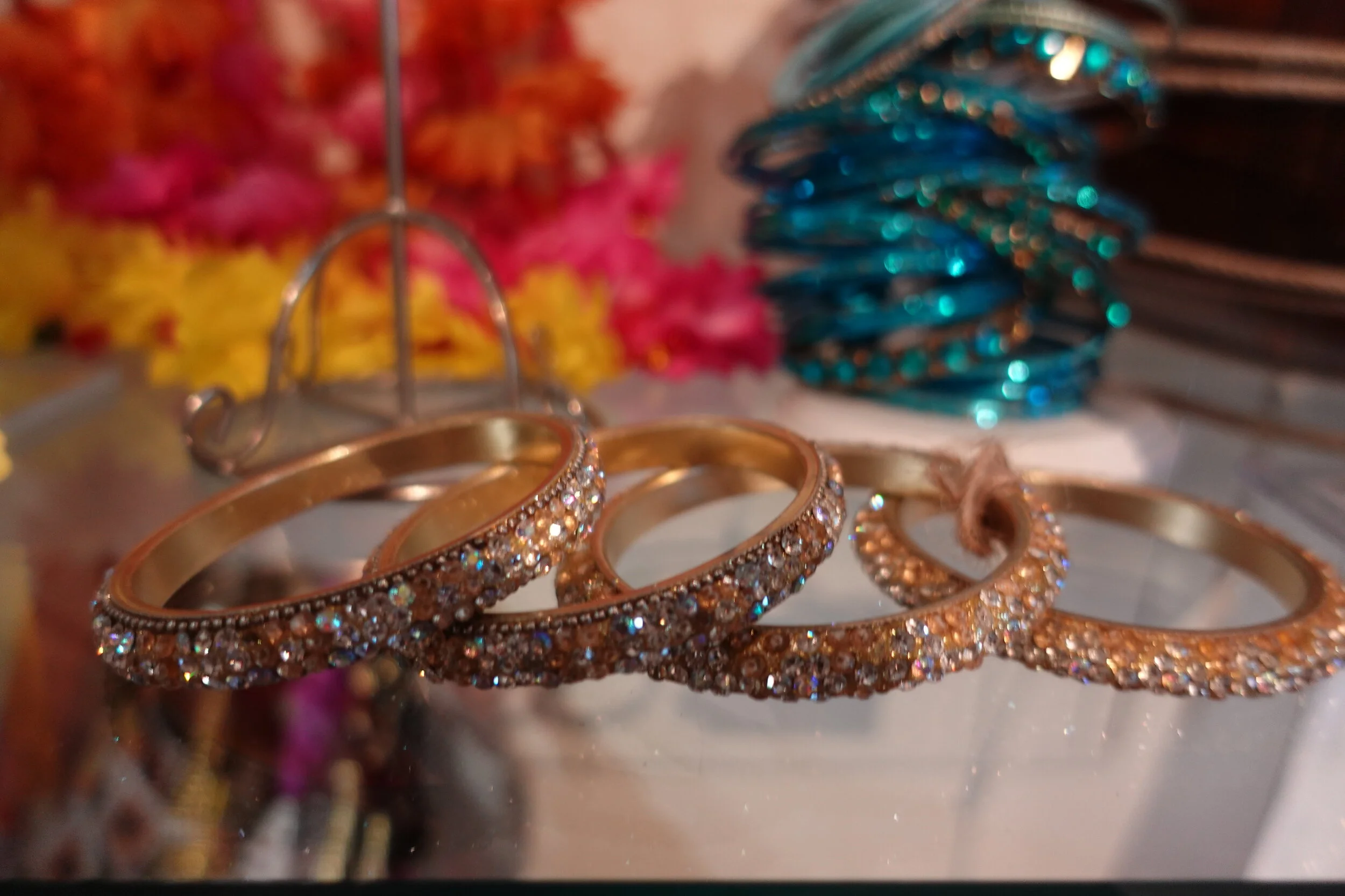 My mother brought with her multi-coloured bangles (Churi sets) in her suitcase when she arrived in England in 1961. I loved it when she opened her suitcase and slipped them on my tiny arms, they made this lovely jingling sound as I moved my arms around. There were so many colours to match her outfits, but mother never wore them, she just looked at them and silently sighed as she remembered home.