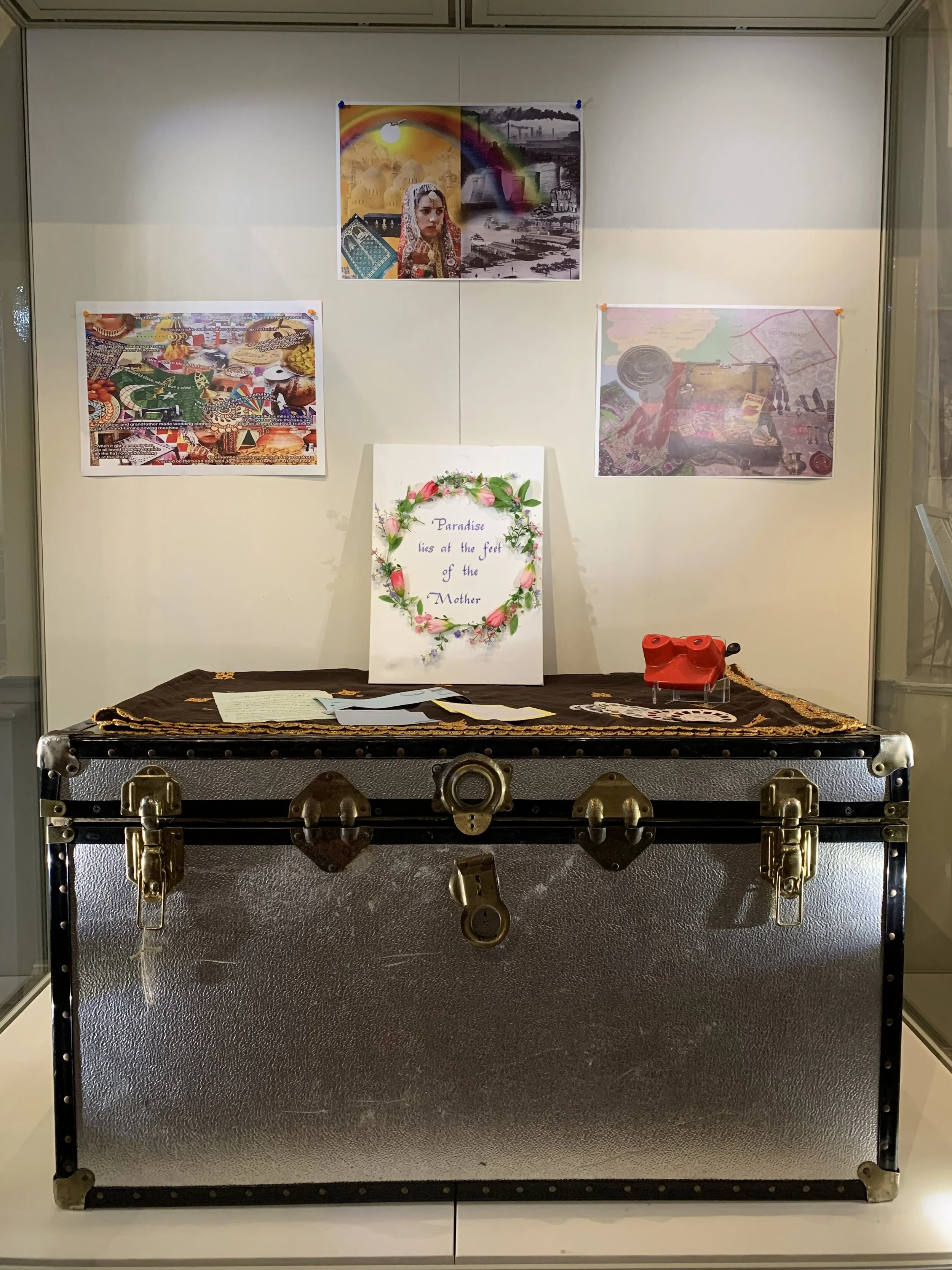 The suitcase represents the migrant diaspora, a journey from one place to another, and for the migrant women; the suitcase carried visual reminders of a home through everyday objects like peg dolls and glass bangles. The suitcase was a vessel holding immigrant women’s memories of nostalgia and objects were evocation of the old home as they navigated a new life, in a different place.