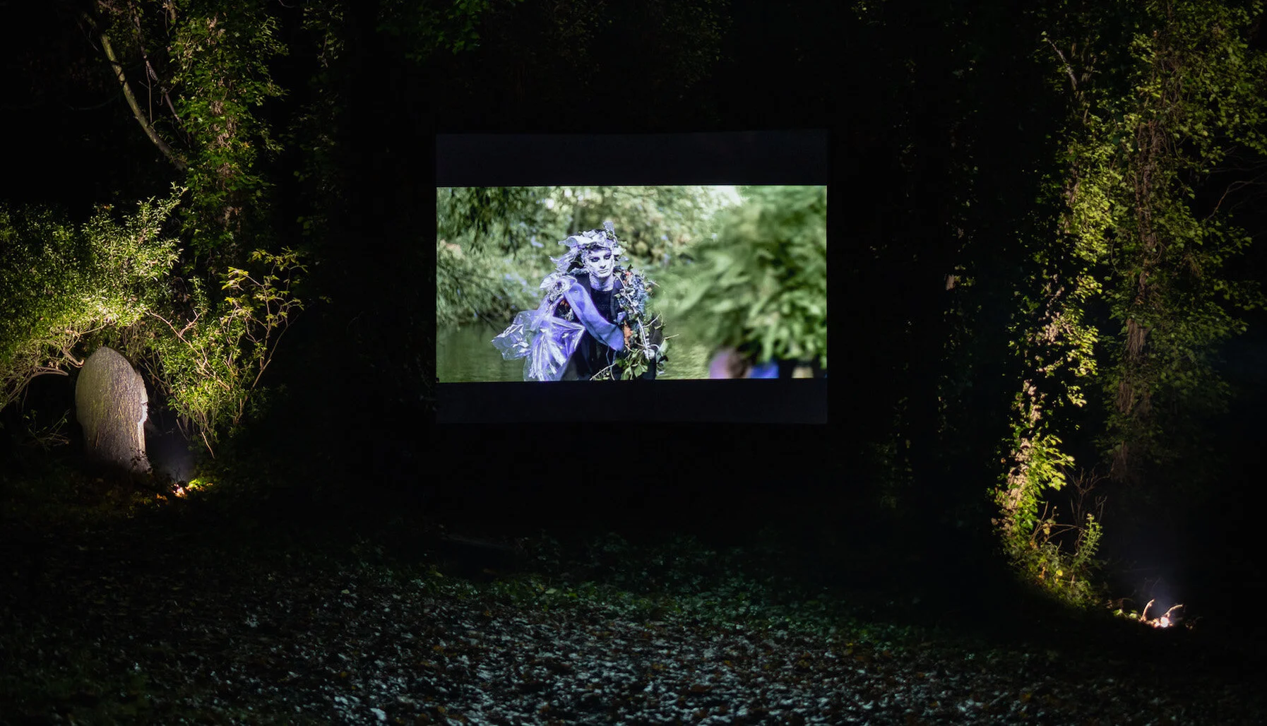 Photograph of an outdoor film screening. Photo credit: Jules Lister.